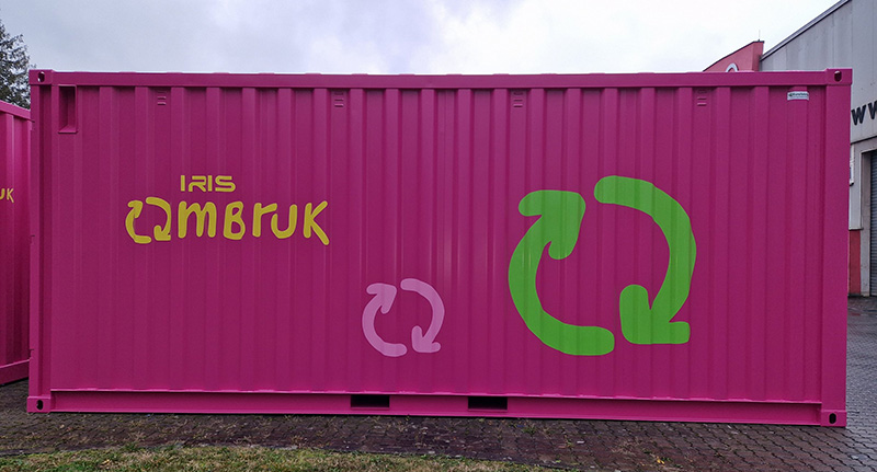 Rosa container – hente til ombruk.